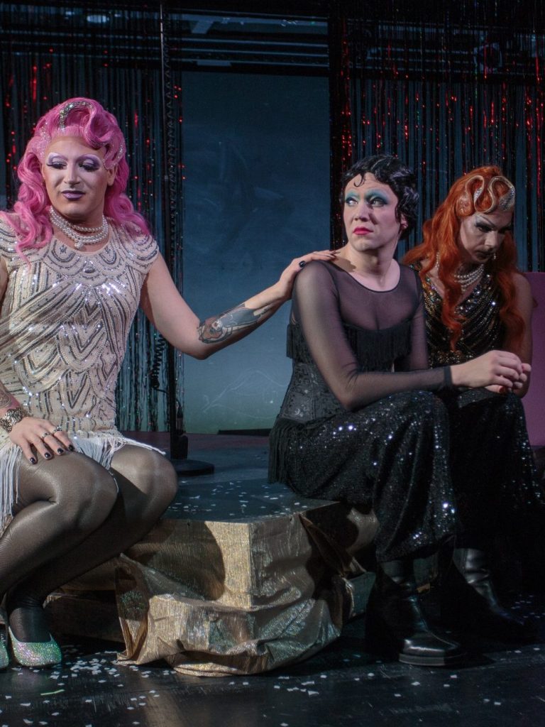 Ihm zur Seite stehen die beiden Dragqueens, Foxy Few-sha und Gia LaRue, zwei wunderbare Diven, die hervorragend singen und auch schauspielern."